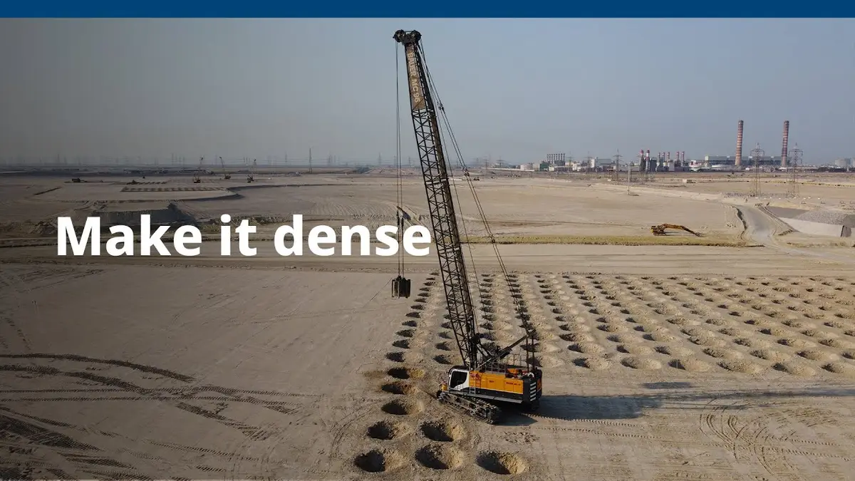 But how can you construct large buildings on desert sand? By using dynamic soil compaction, for example. The method is particularly suited for increasing the bulk density of non-cohesive, friable soils and loose mixed soils with a low fine aggregate content, which makes it ideal for the subsoil composition in desert regions. “And because the pore water is pressed out of the subsoil, in the event of an earthquake there is also a lower risk of soil liquefaction,” explains Steffen Fuchsa, Head of the product line at BAUER Maschinen GmbH.