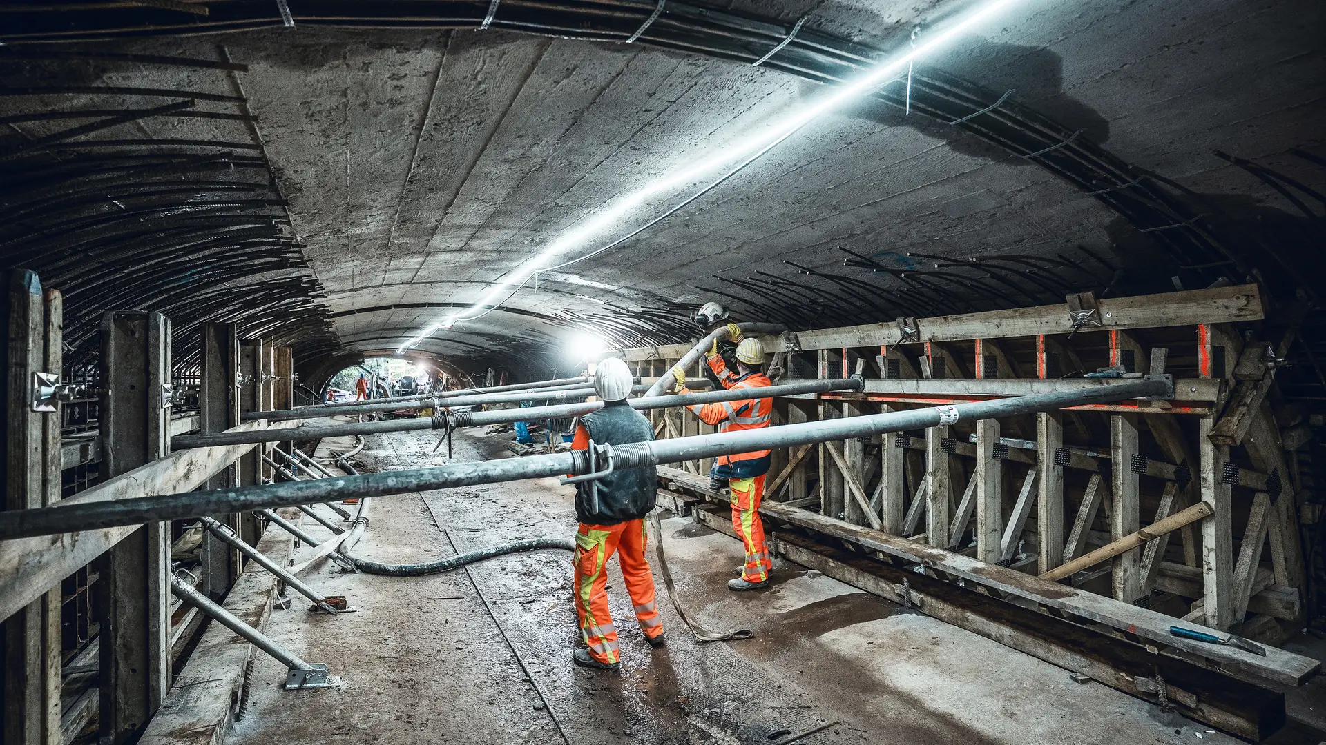 During the course of the work, a new reinforced inner shell made of in-situ concrete and shotcrete was constructed in the tunnel to provide the necessary stability for the future. This also considerably enhances the structure’s lifespan. Work started in April 2025 and is expected to be completed by March 2026. First the excavation and concrete demolition work was carried out to remove old and loose material. This was followed by the construction of excavation pits for the foundations. Reinforcement works and formwork construction are currently underway, as well as concrete work for foundations and abutments using in-situ concrete. Work will conclude with the execution of the tunnel crown using the shotcrete method. With roughly 350 m³ of excavated soil and demolished concrete, 650 m³ of in-situ concrete, 1,000 t of shotcrete and 120 t of reinforcement cages, this is a technically demanding project that requires precision and experience.